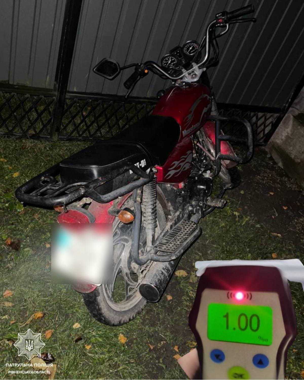 Поліцейські зупинили транспортний засіб та виявили у 39-річного водія ознаки алкогольного сп'яніння: запах алкоголю із порожнини рота, порушення мови та поведінка, що не відповідає обстановці. Керманич погодився пройти огляд за допомогою алкотестера. Результат виявився позитивним: 1,00 проміле, - повідомила пресслужба патрульної поліції Рівненської області.