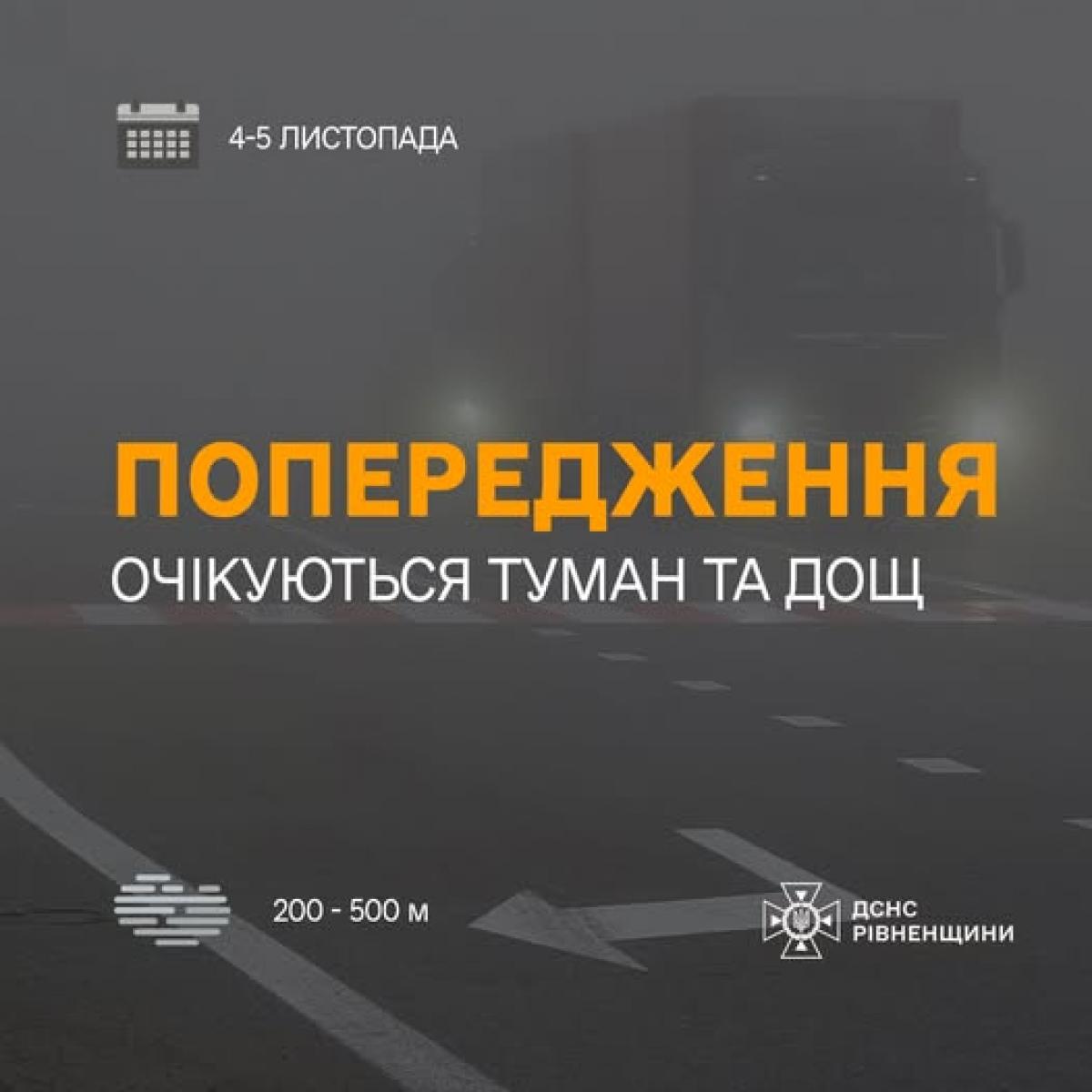 За інформацією Рівненського обласного центру з гідрометеорології ввечері 4 листопада та вночі та вранці 5 листопада очікується туман 200-500 м!!
