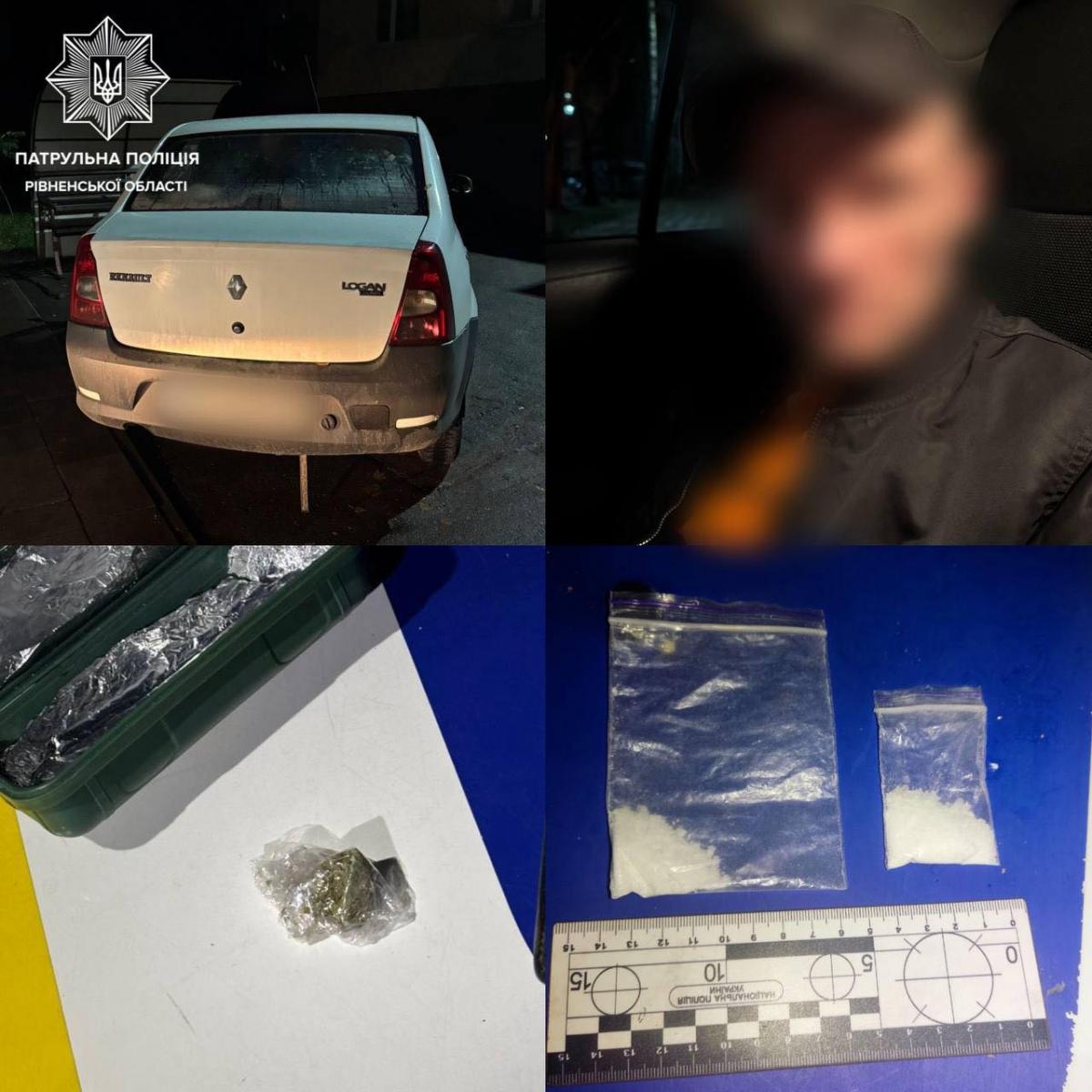 Під час спілкування з 48-річним водієм інспектори виявили у нього ознаки наркотичного сп?яніння та помітили його підозрілу поведінку — чоловік нервував та намагався уникнути розмови, тому поліцейські провели поверхневу перевірку та виявили у рюкзаку поліетиленовий згорток із речовиною рослинного походження, ймовірно, наркотичною. А у дверній карті автомобіля знайшли два зіп-пакети з порошкоподібною речовиною, схожою на наркотичну. Водію запропонували пройти огляд у медзакладі. Водій погодився, однак у медзакладі змінив свою думку та відмовився від проходження.