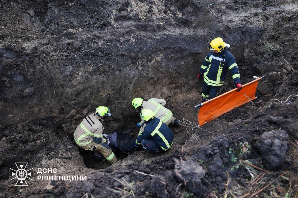 За допомогою екскаватора та лопат надзвичайники розкопали тіло та підняли його на поверхню. Наразі усі обставини загибелі чоловіка встановлюють працівники поліції.