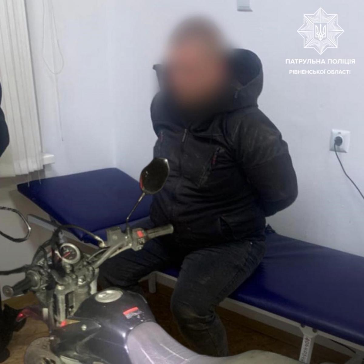 Нещодавно у Рокитному на вулиці Мальовничій патрульні помітили мотоцикл Loncin без номерного знака. Інспектори зупинили водія і почали з ним спілкуватися, а через деякий час він почав утікати з місця події.