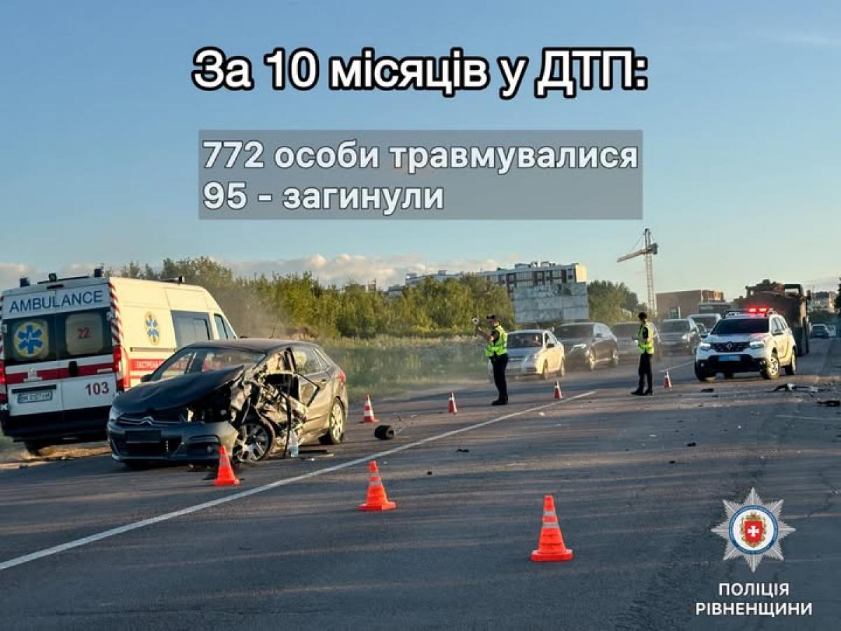 На Рівненщині протягом 10 місяців сталося 3199 ДТП. За аналогічний період минулого року — 3151. Пік аварійності припадає орієнтовно на 17 годину.