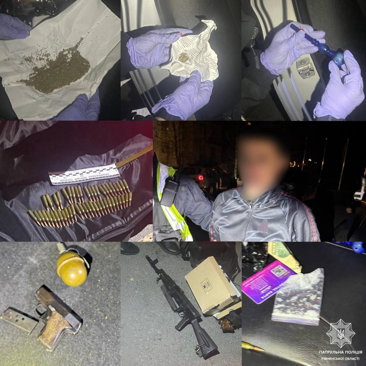 Під час цього в авто виявили автомат, пістолет, набої, гранату та пакети із речовинами, схожими на наркотичні.