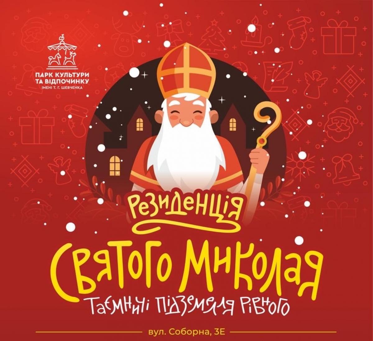 Працюватиме зимова резиденція Святого Миколая у Таємничих Підземеллях Рівного (Парк культури та відпочинку імені Т. Г. Шевченка, вул. Соборна, 3-Е).