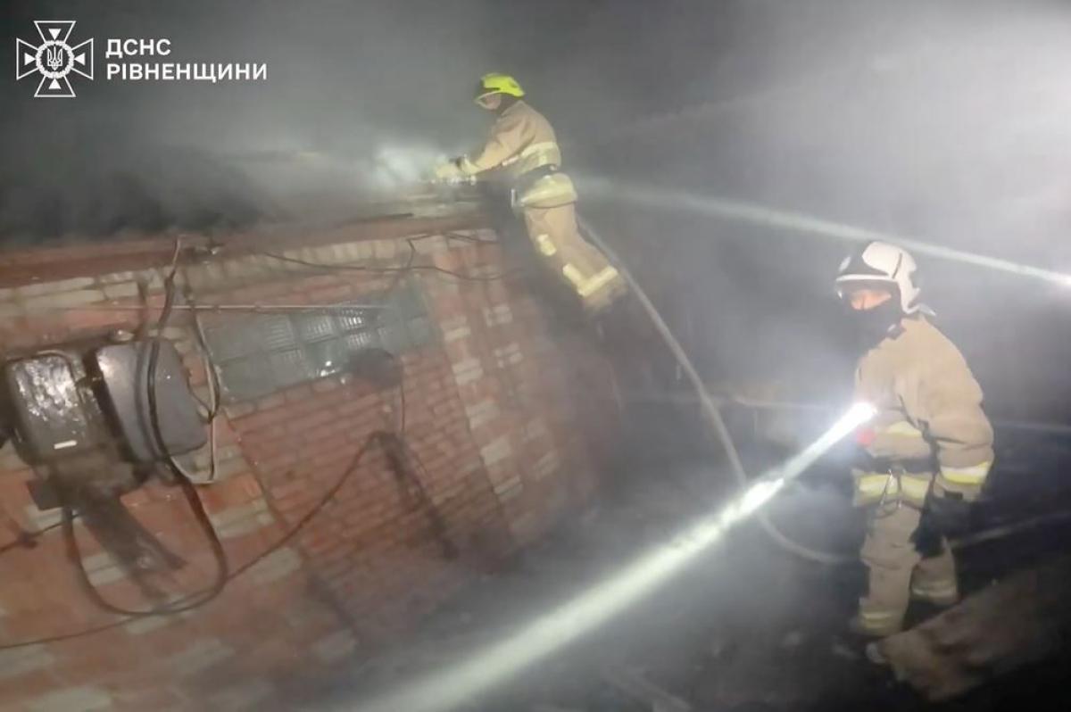 На виклик оперативно виїхали рятувальники 18-ї державної пожежно-рятувальної частини м. Здолбунів. По прибуттю на місце події встановили, що займання виникло на даху господарської будівлі. Рятувальники подали вогнегасні речовини на гасіння пожежі.