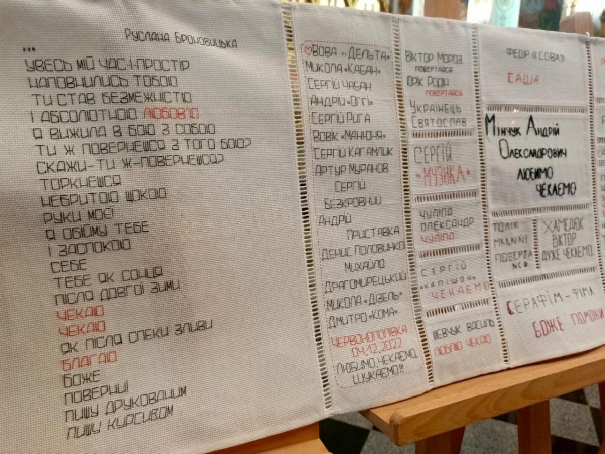 Усі ці жінки живуть у стані невизначеної втрати. Фахівці називають це одним із найважчих станів, бо людина тривалий час живе в невідомості. Тому робота над рушником стала для кожної з нас своєрідною молитвою. В кожному стібку, в кожному слові "люблю" та "чекаю" закодована наша віра в те, що рідні повернуться додому, - розповіла Руслана Броновицька.