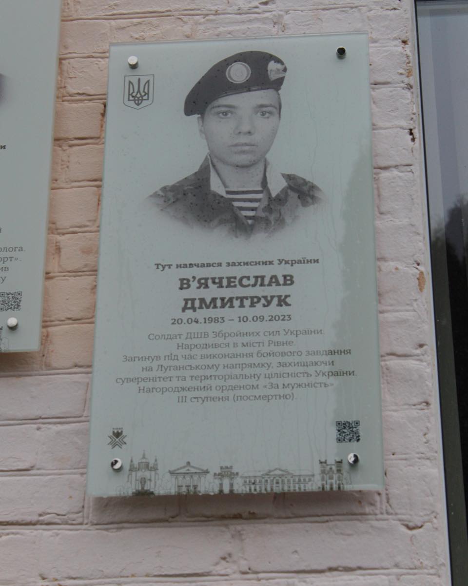 Сьогодні, 28 листопада, на фасаді Рівненської гімназії №6 відкрили меморіальну дошку на честь загиблого Героя – В'ячеслава Дмитрука.