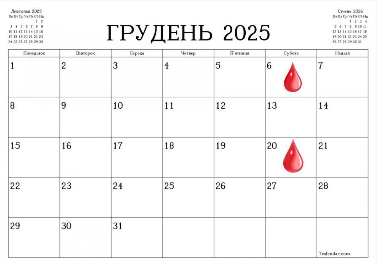 У грудні можна буде приходити на донацію у суботи 6 та 20 грудня.