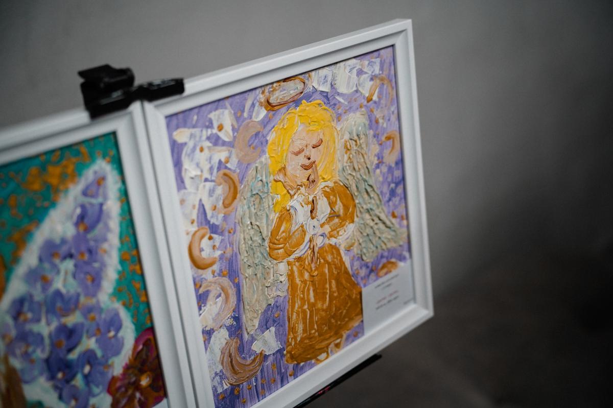 Серія «Янголи — народжені душею» присвячена вірі, любові та вдячності тим, хто боронить Україну. Для авторки ця тема особливо особиста — її батько та брат служать у ЗСУ. Тому виставка має благодійний характер: виручені кошти спрямують на підтримку армії.