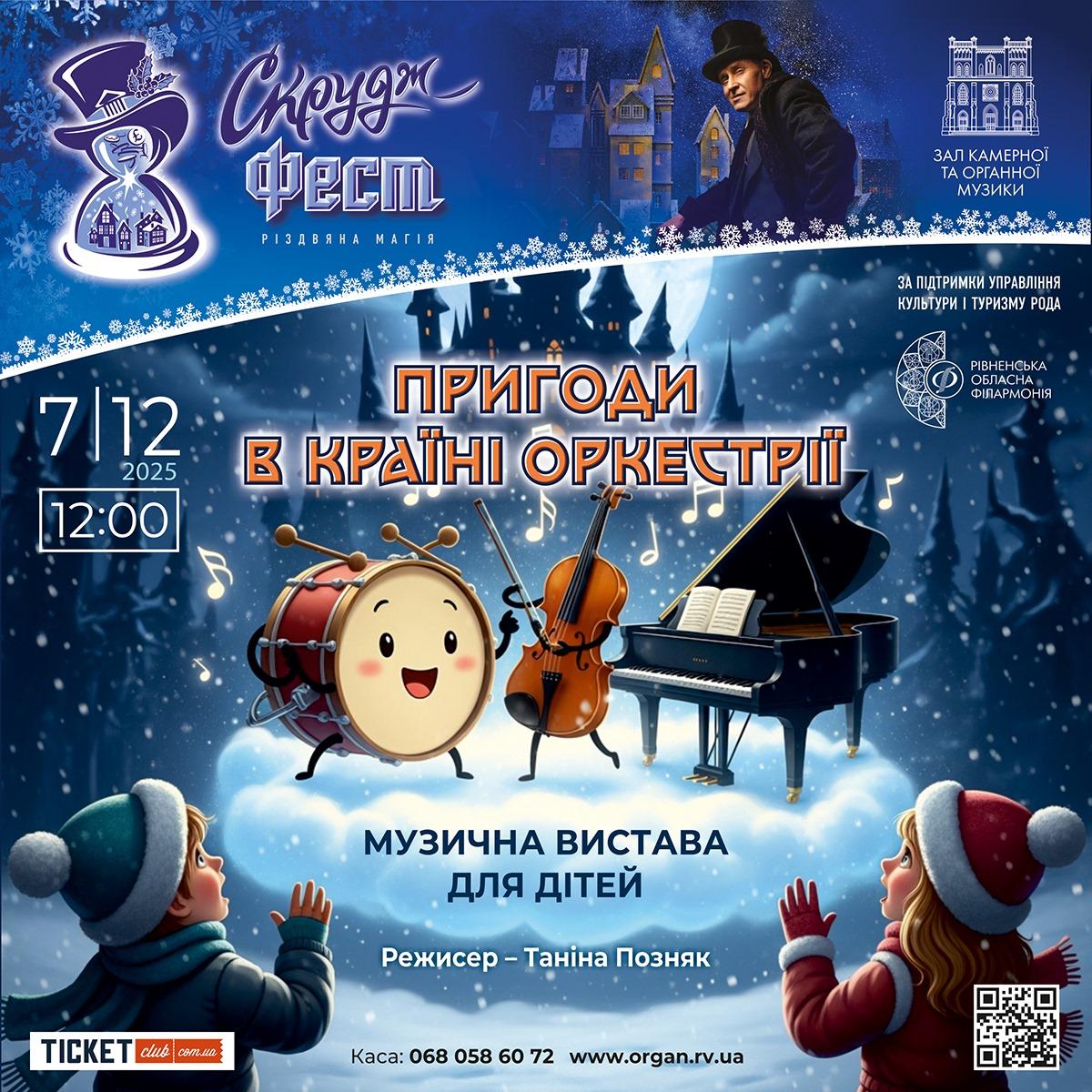 На музичну виставу «Пригоди в країні Оркестрії» малечу Рівненщини запрошує Рівненська обласна філармонія. Мистецький захід відбудеться в Залі камерної та органної музики вже цієї неділі, 7 грудня, о 12.00. На дітей чекає знайомство з небесним оркестром Святого Миколая та Володарем Зландії Мороком, який хоче завадити святу та залишити всіх без подарунків.