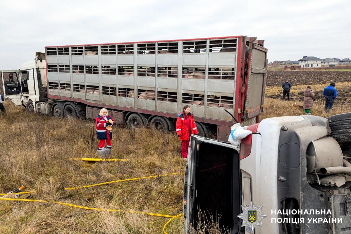 Водій автомобіля «BMW X5», 55-річний житель Колоденки, виїхав на зустрічну смугу, де допустив зіткнення із вантажівкою «MAN», яка була завантажена тваринами. Від удару обидва транспортні засоби злетіли у кювет, а позашляховик — ще й перекинувся, - попередньо встановили правоохоронці.
