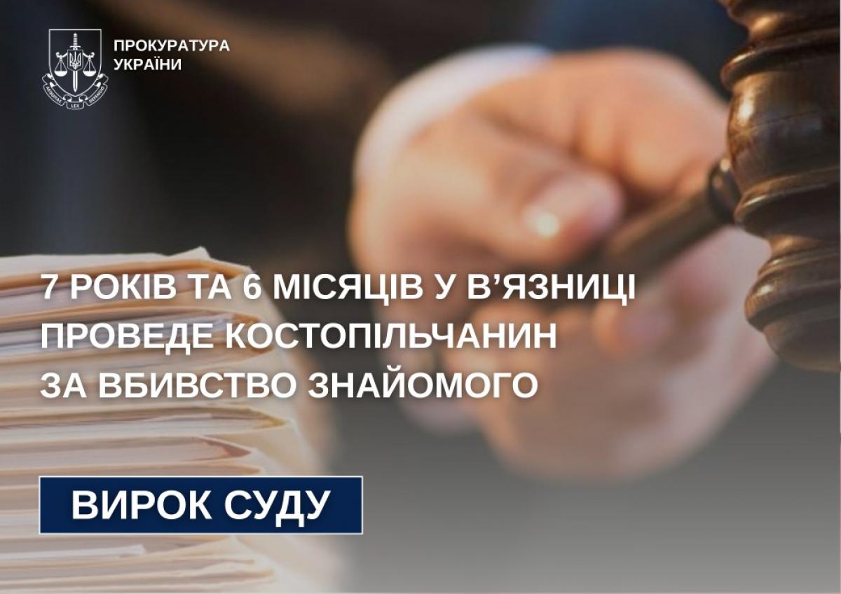 Прокурор Костопільського відділу Здолбунівської окружної прокуратури в суді довів вину чоловіка в умисному вбивстві знайомого.