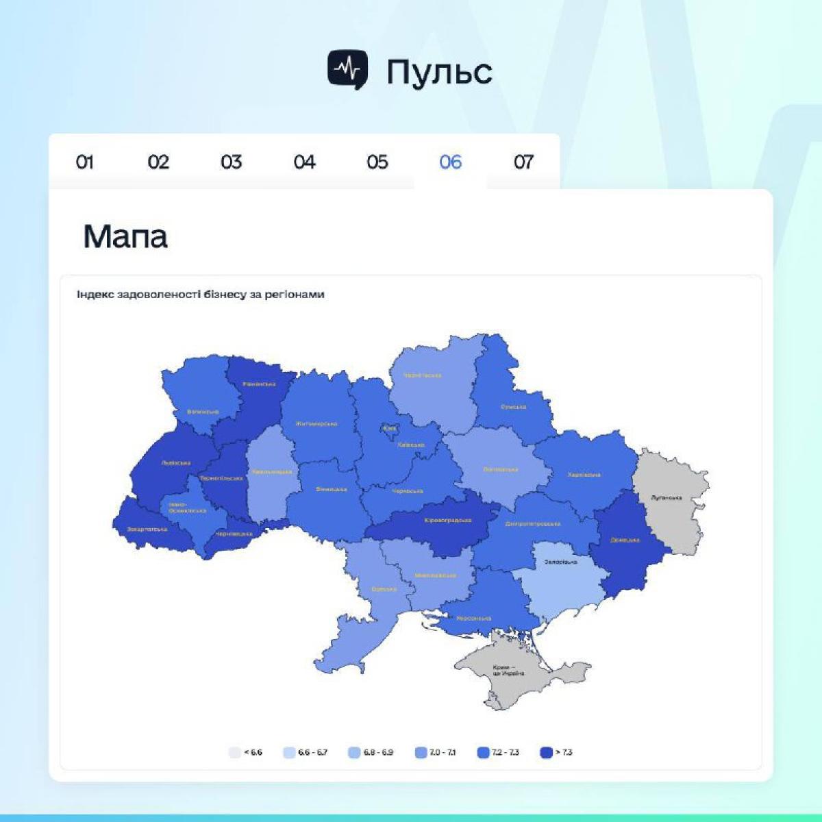 Платформа зворотного зв’язку для підприємців «Пульс» уже об’єднала 8,2 тисячі оцінок та понад 500 коментарів від верифікованих підприємців Рівненської області. Індекс задоволеності бізнесу в регіоні наразі становить 7,4 бала.