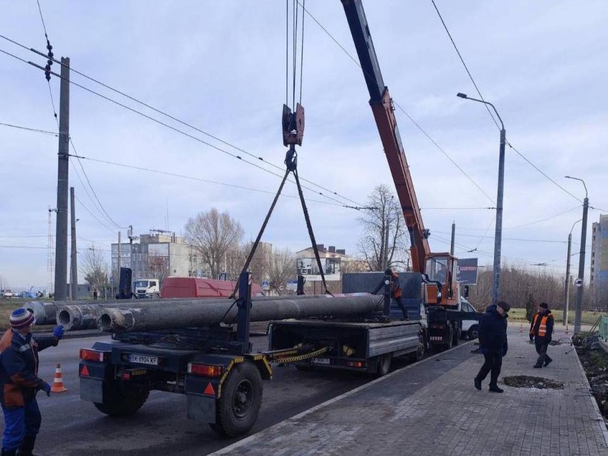 Працівники служби електрогосподарства КП "Рівнеелектроавтотранс" РМР по вулиці Соборній (Луцьке кільце) встановили і демонтували три аварійні опори контактної мережі.