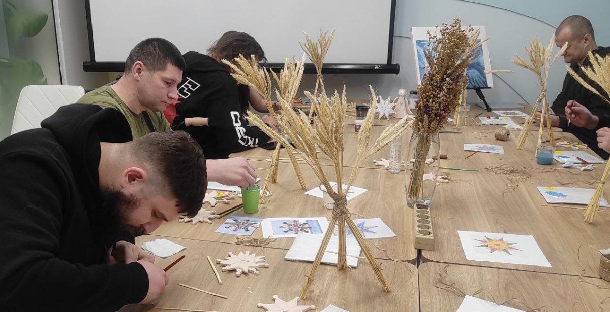 Паралельно керівниця гуртка художньої кераміки «Магія глини» Палацу культури УСО філії «ВП «Рівненська АЕС» АТ «НАЕК «Енергоатом» Анастасія Клочун проводила для охочих пацієнтів майстер-клас із виготовлення різдвяного дідуха.