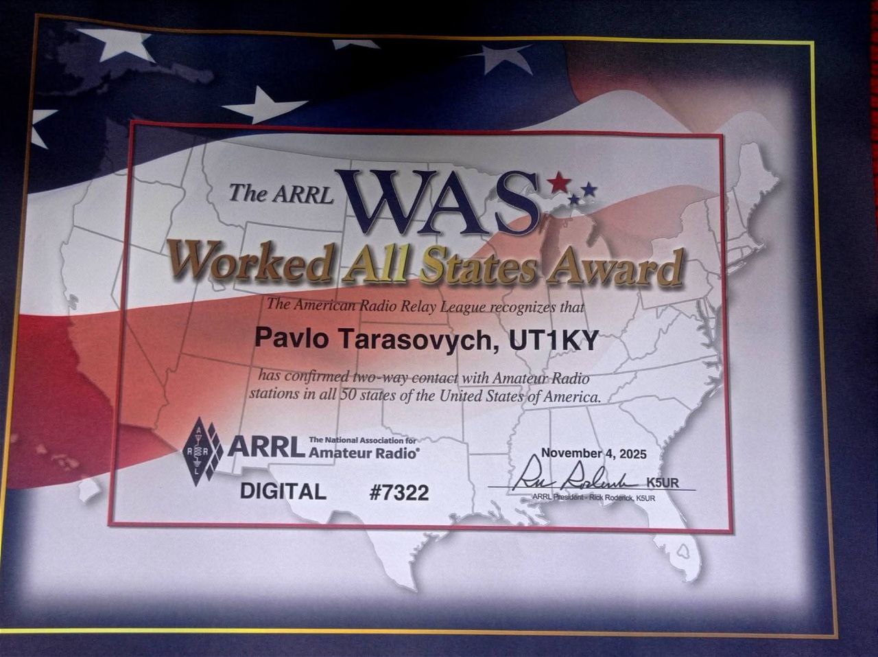 Дипломом WAS нагороджують радіоаматорів світу, котрі спромоглися провести та підтвердити радіозв'язок з радіоаматорами 50 штатів США.