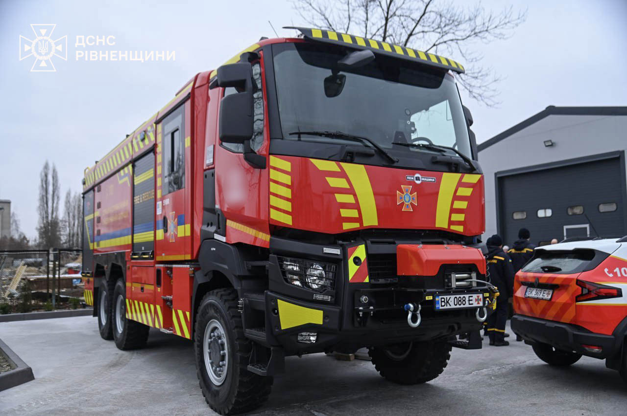 Рятувальники отримали пожежну автоцистерну «Renault», спеціалізовані автомобілі «SsangYong Musso Grand» та «Renault Duster», а також безпілотний літальний апарат «DJI Mavic 4 PRO» для виконання службових і превентивних завдань.