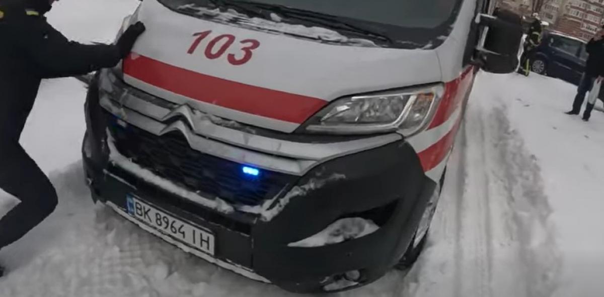 У мікрорайоні Перемоги через негоду застрягла карета швидкої допомоги. Ситуація була критичною, оскільки всередині перебував пацієнт, якого терміново везли до лікарні.