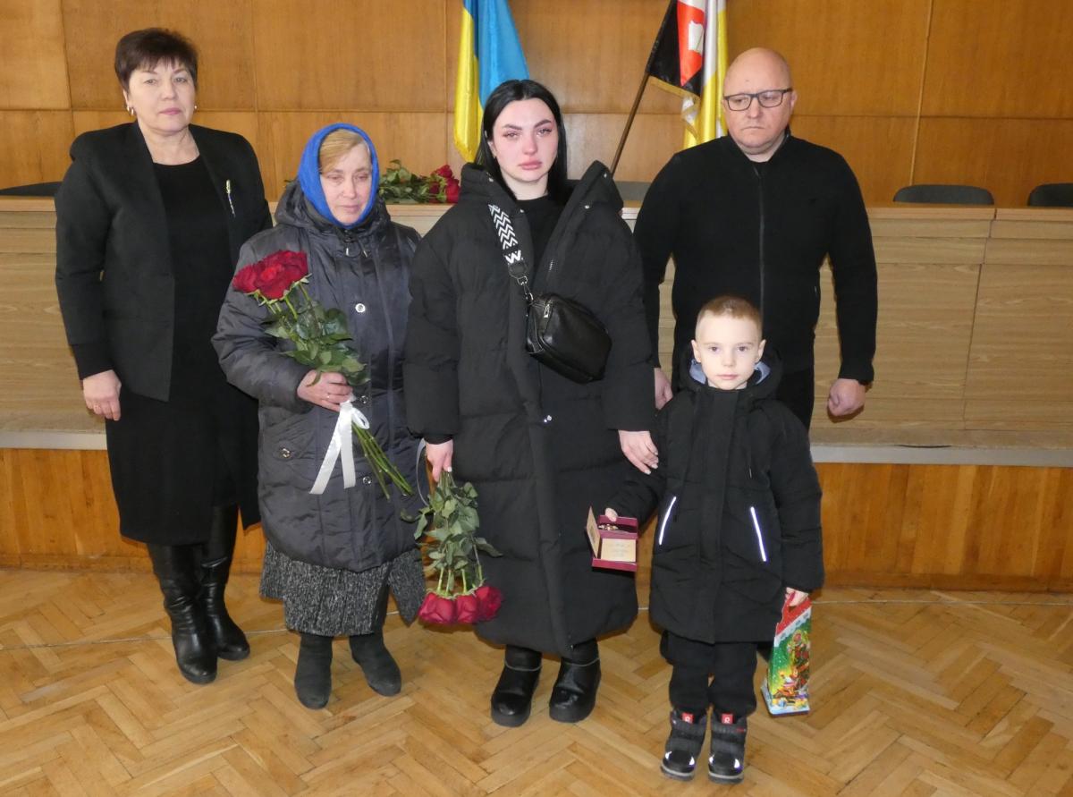 Орден здолбунівчанина Івана Рябого вручили його дружині, мамі та синові Матвію.
