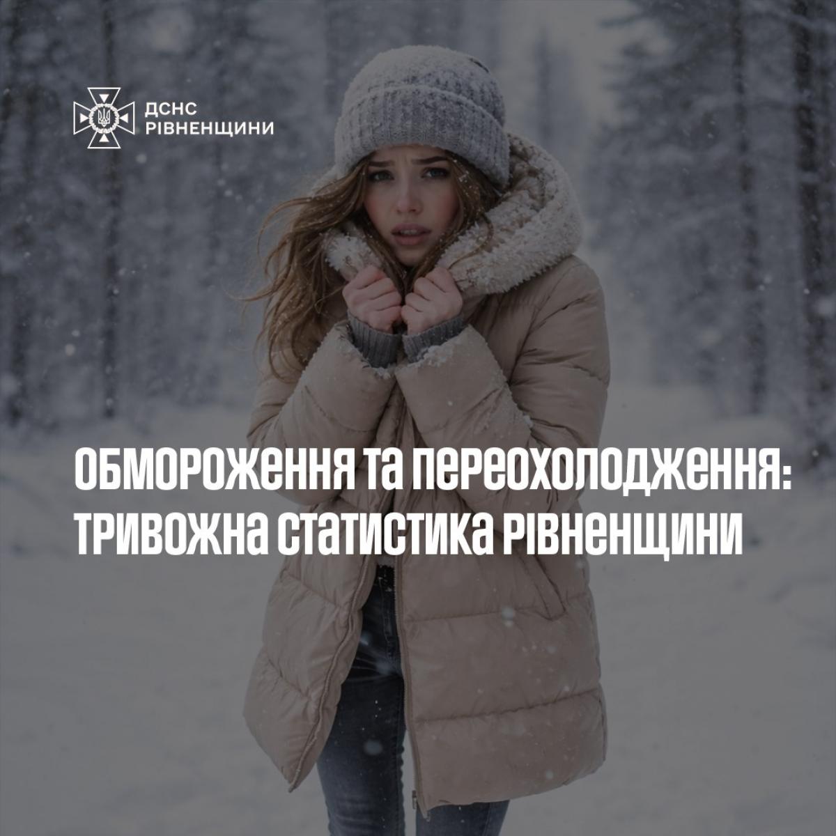 Упродовж 19–20 січня на території Рівненської області зафіксовано 4 випадки обмороження та загального переохолодження, внаслідок яких постраждалі були госпіталізовані до медичних закладів.