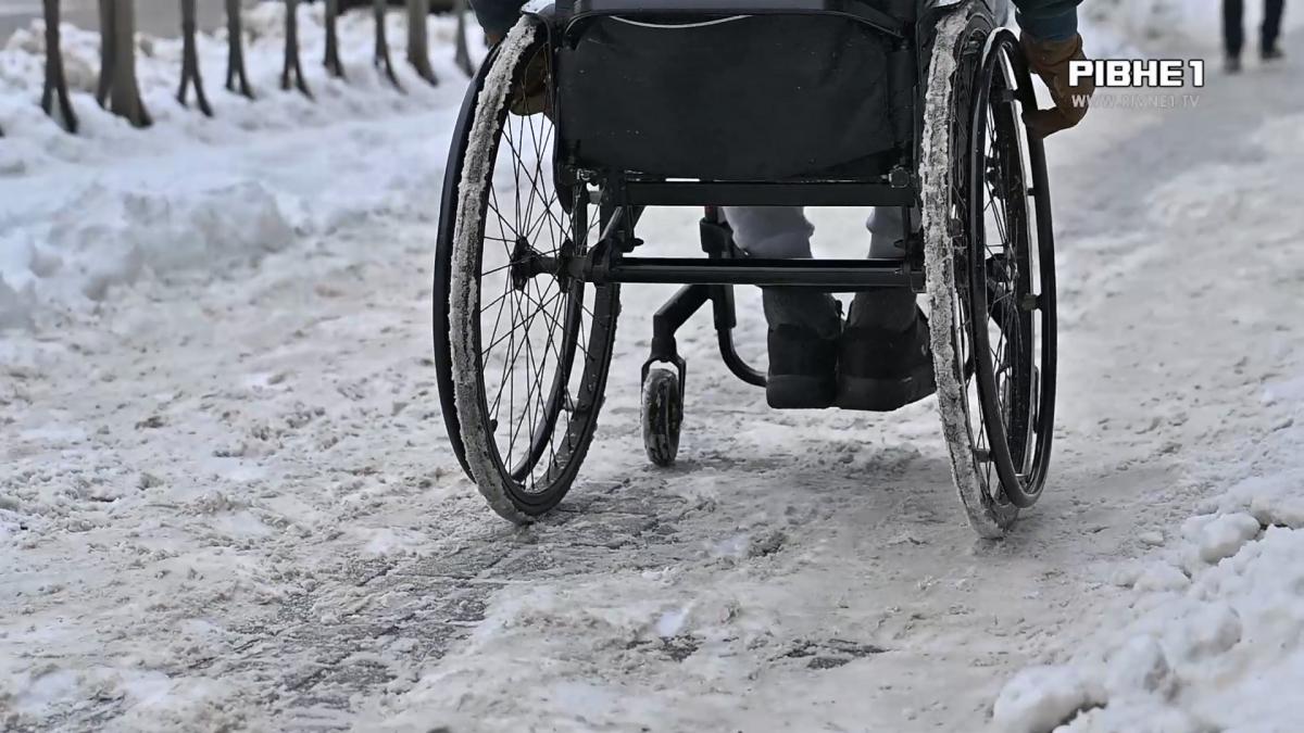 Так у Рівному виглядає безбар'єрність на папері, адже інакше не скажеш. Суцільний лід, змерзлі доріжки та пагорби зі снігу прямо на тротуарі. Ветеран Михайло Наливайко каже, самостійно пересуватися містом узимку неможливо, то ж доводиться просити людей допомоги, що приносить емоційний дискомфорт.