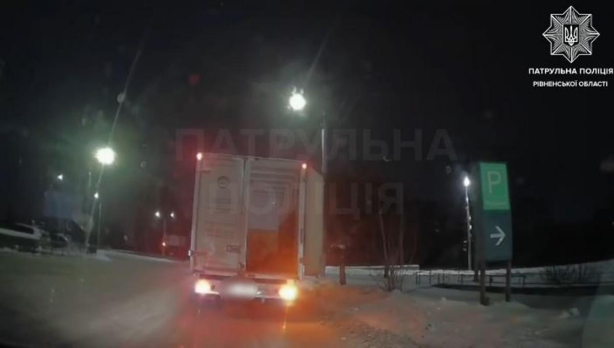 Сьогодні опівночі у Рівному на вулиці Богоявленській патрульні виявили вантажний автомобіль Renault з технічною несправністю: під час руху були відкриті двері до багажного відділення.