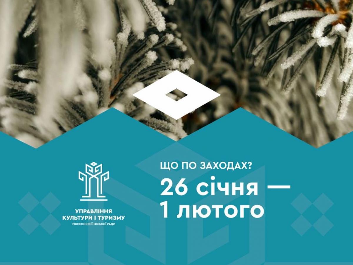 Рівнян та гостей міста запрошують на загальноміські заходи, які будуть відбуватися у Рівненській міській територіальній громаді на період з 27 січня по 1 лютого. Протягом цього тижня на вас чекає безліч цікавих подій, заходів, майстер-класів, виставок, тощо.