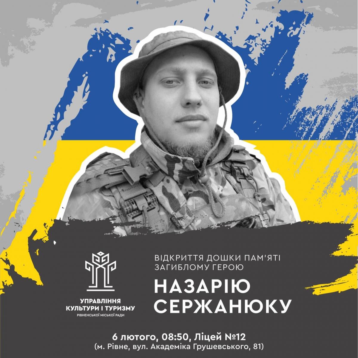 Сьогодні, о 8:50, на фасаді ліцею №12 відбудеться відкриття дошки пам’яті загиблому Герою Назарію Сержанюку.