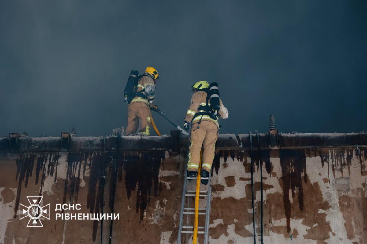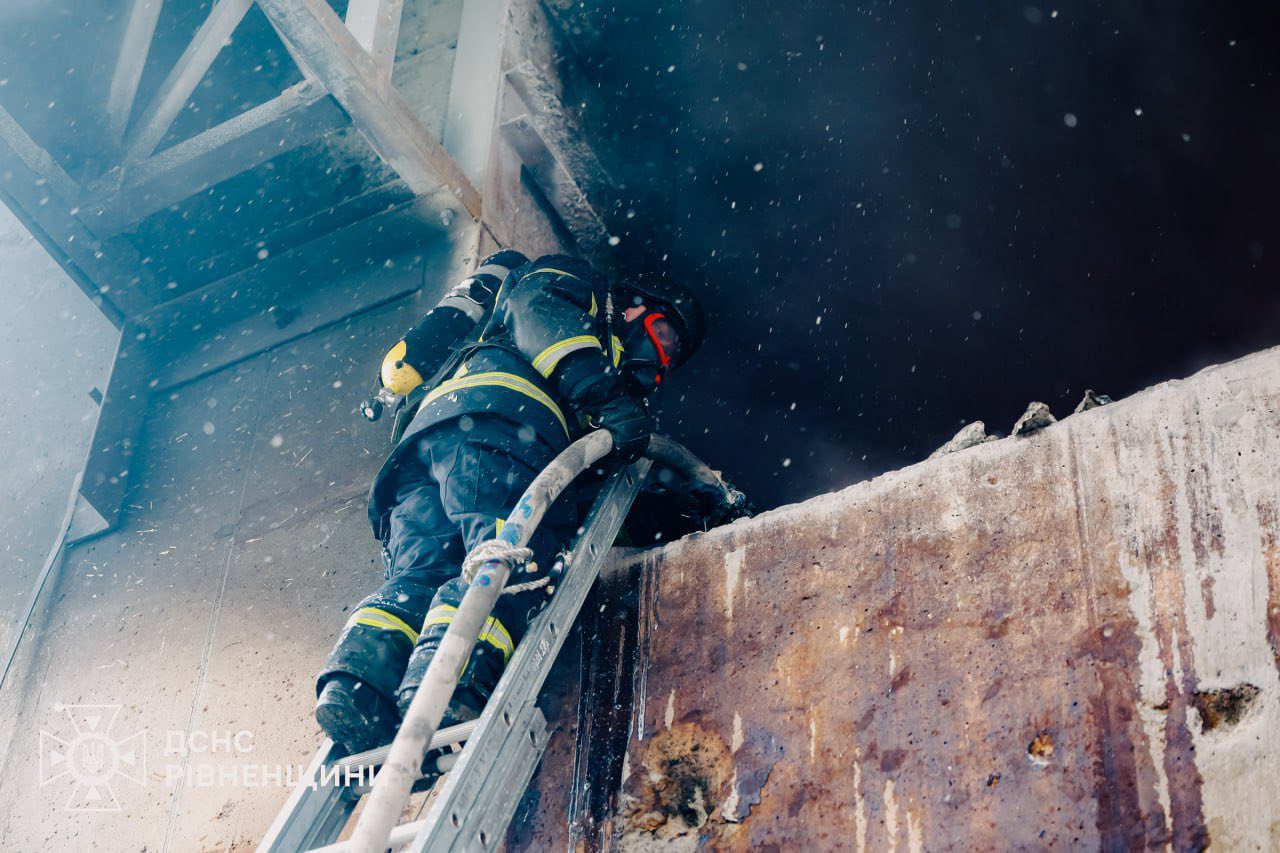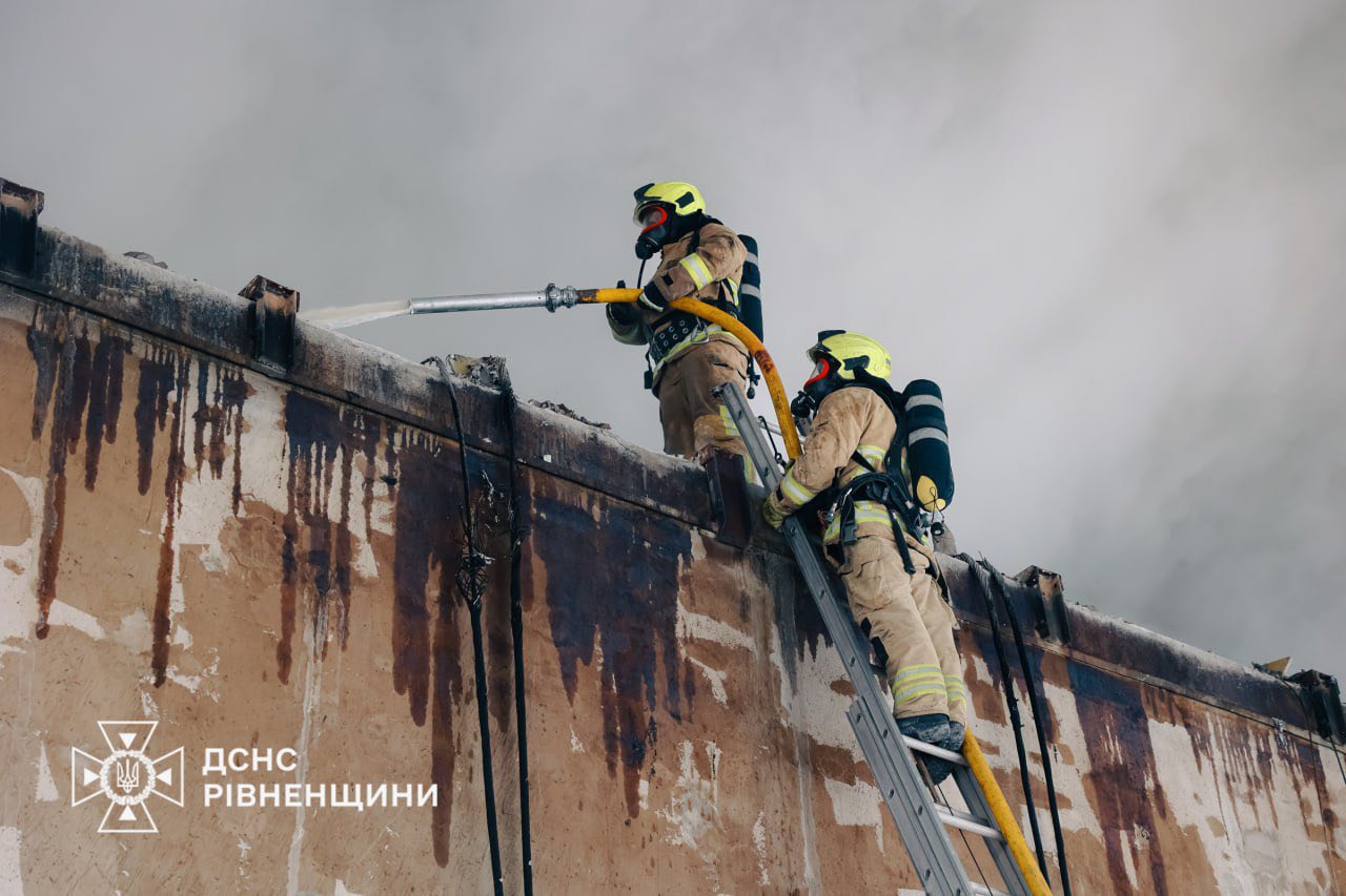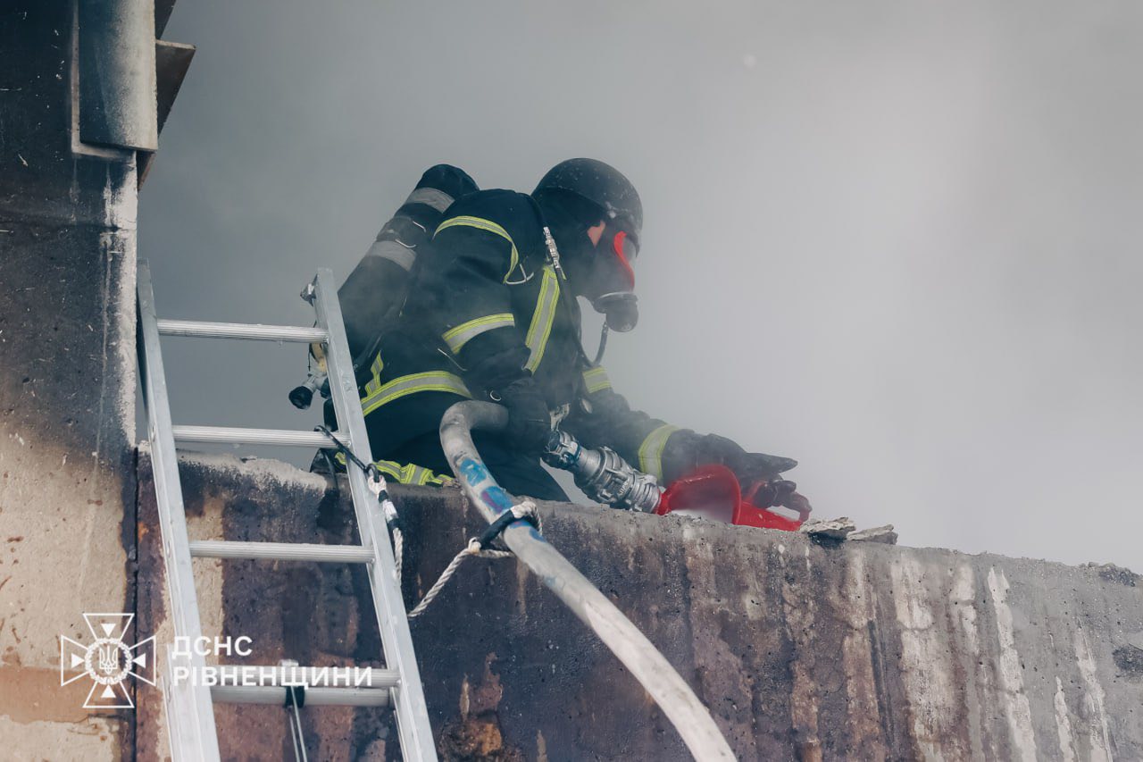 Рівненські рятувальники ліквідували пожежу, спричинену російським ударом по об’єкту критичної інфрастуктури області