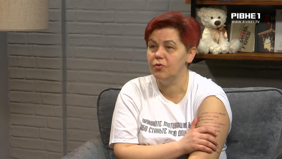 14 імен рідних, знайомих, однокласників та найближчих людей, яких більше немає. Тепер усі вони викарбувані тут, на плечі біля серця. Пані Ольга мама полеглого на війні Героя - Кості Юзвюка. Нещодавно жінка набила тату в честь нього та інших близьких загиблих воїнів. Поштовхом такого рішення стала щоденна загальнонаціональна хвилина мовчання, що проходить у Рівному. Десятки облич і лише 60 секунд пам’яті, якої не вистачає.