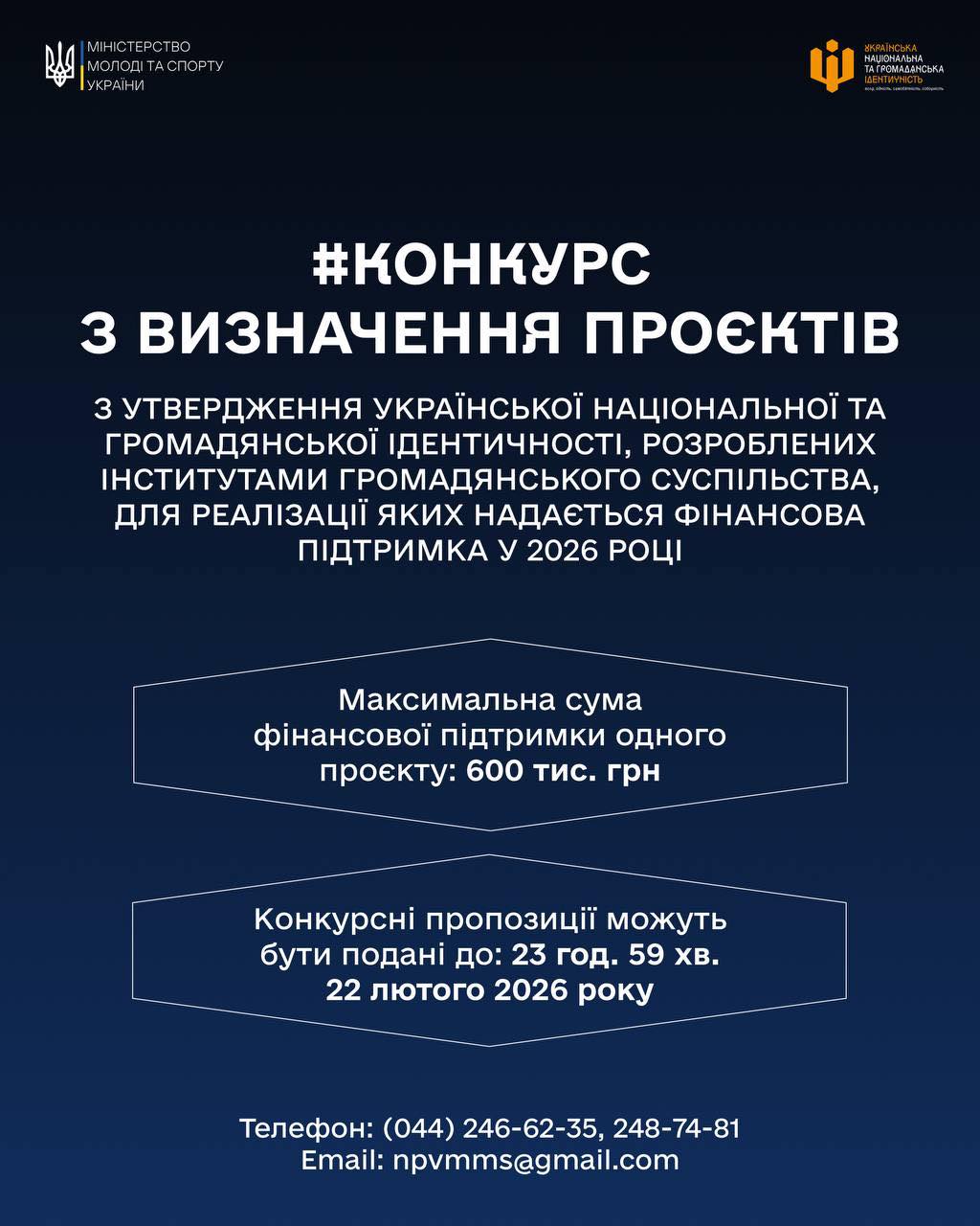 Прийом заявок триватиме до 22 лютого 2026 року (до 23:59) через електронну систему:
