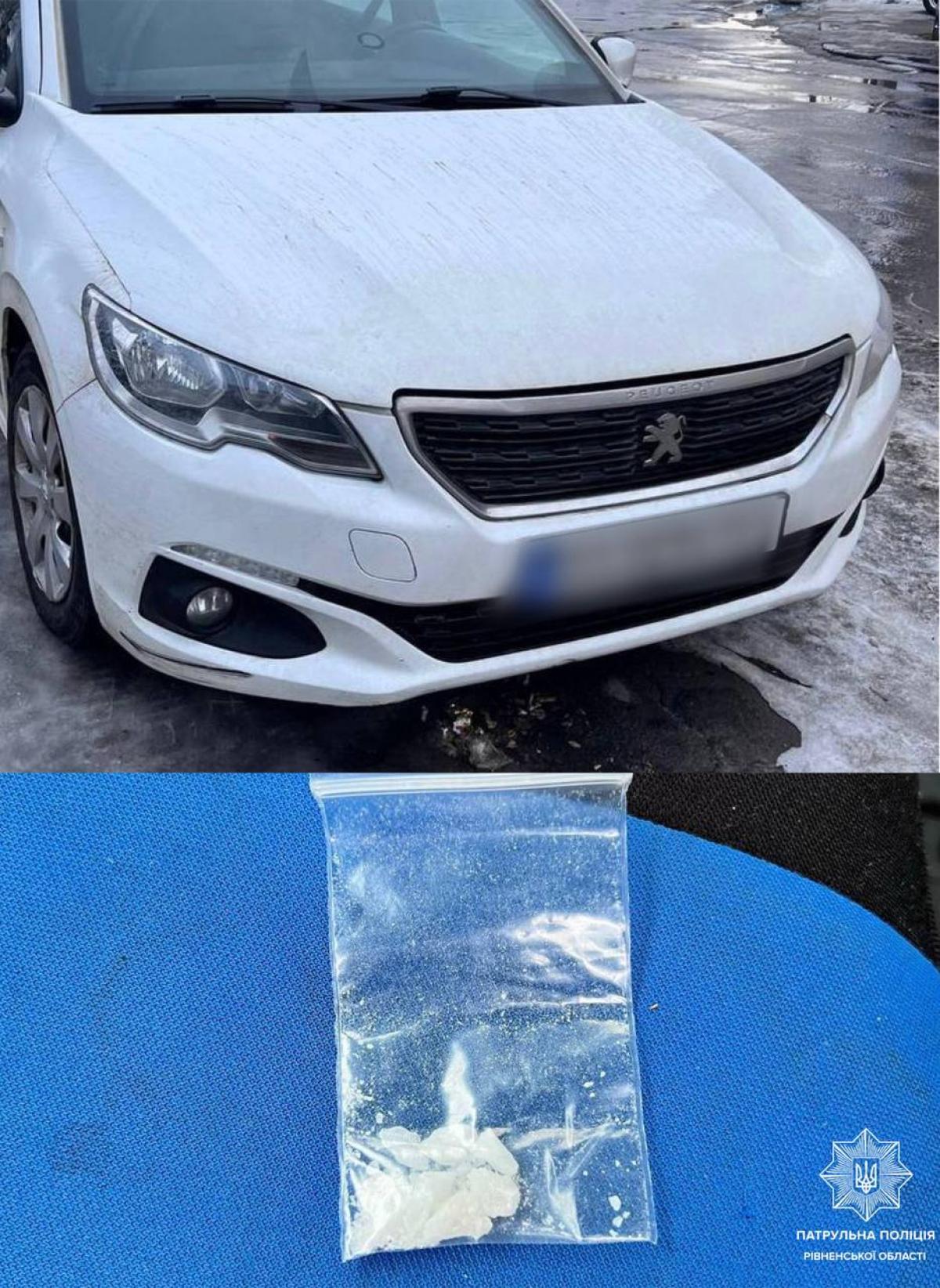 В автомобілі патрульні виявили зіп-пакетик із речовиною білого кольору, схожою на наркотичну.