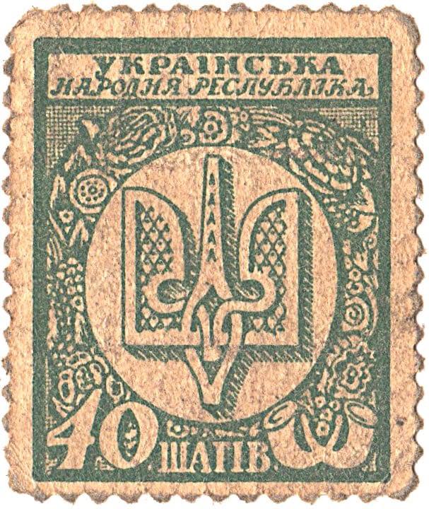 Розмінна марка номіналом 40 шагів часів Української народної республіки з зображенням тризуба.