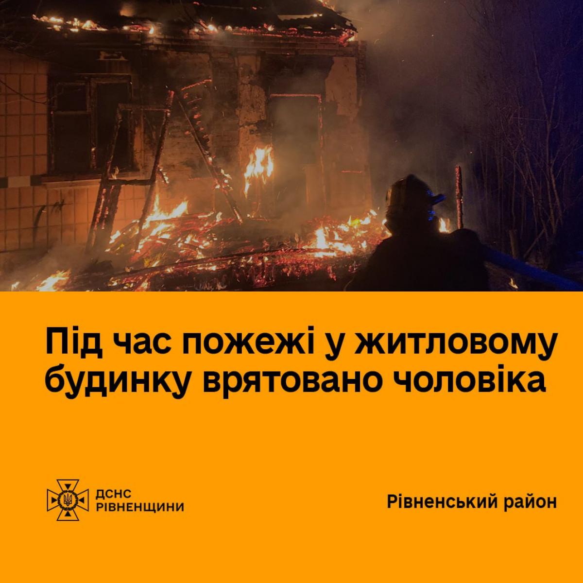 Завдяки злагодженим діям вогнеборців та небайдужих місцевих жителів із палаючого приміщення було врятовано чоловіка 1969 року народження. Потерпілого оперативно передали працівникам екстреної медичної допомоги. Наразі він госпіталізований до КП «Рівненська обласна клінічна лікарня імені Юрія Семенюка» у важкому стані з діагнозом: термічні опіки обличчя, верхніх дихальних шляхів, верхніх та нижніх кінцівок ІІ–ІІІ ступенів.