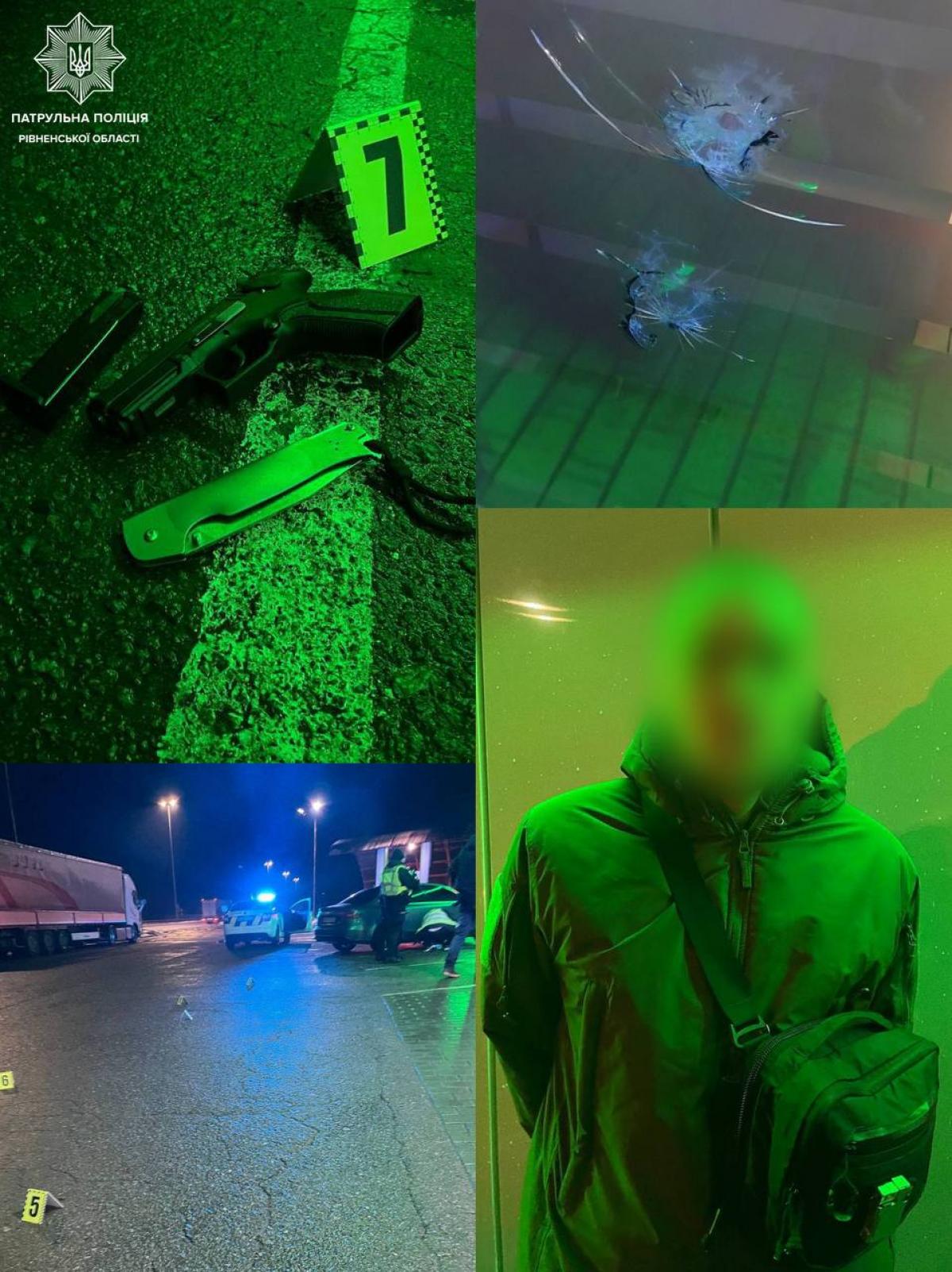 Під час конфлікту один із учасників дістав предмет, схожий на травматичний пістолет, та здійснив кілька пострілів у бік іншого водія.