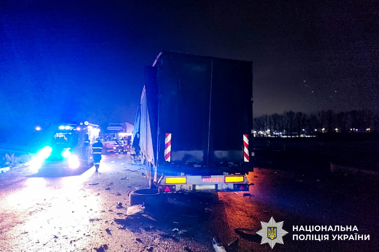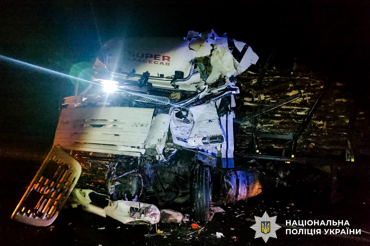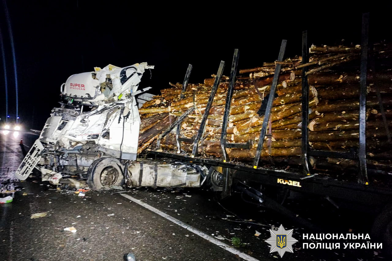 Від удару «DAF» із напівпричепом відкинуло на зустрічну смугу, де вона зіткнулася із такою ж вантажівкою, водієм якої був 31-річний житель Житомирщини.