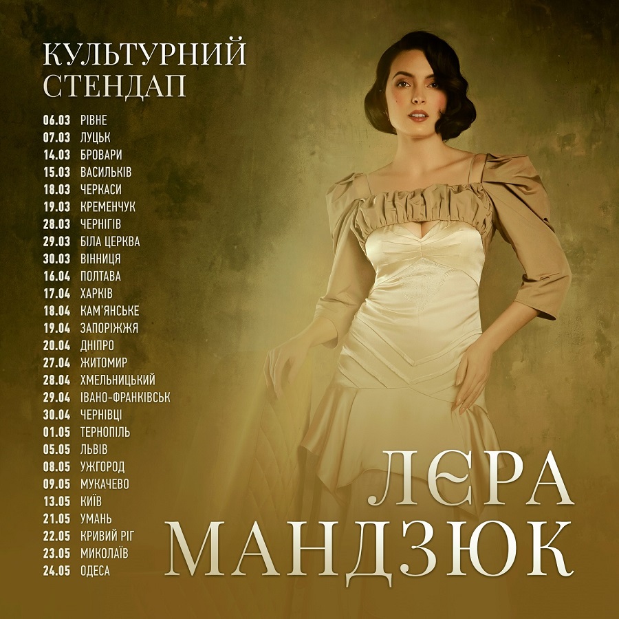 6 березня о 19.00 у Міському будинку культури рівняни найпершими побачать «Культурний стендап» — нову вражаючу концерту програму Лєри Мандзюк, яка подарує всім незабутні години позитиву, спілкування, блискучої імпровізації та найяскравіших вражень.