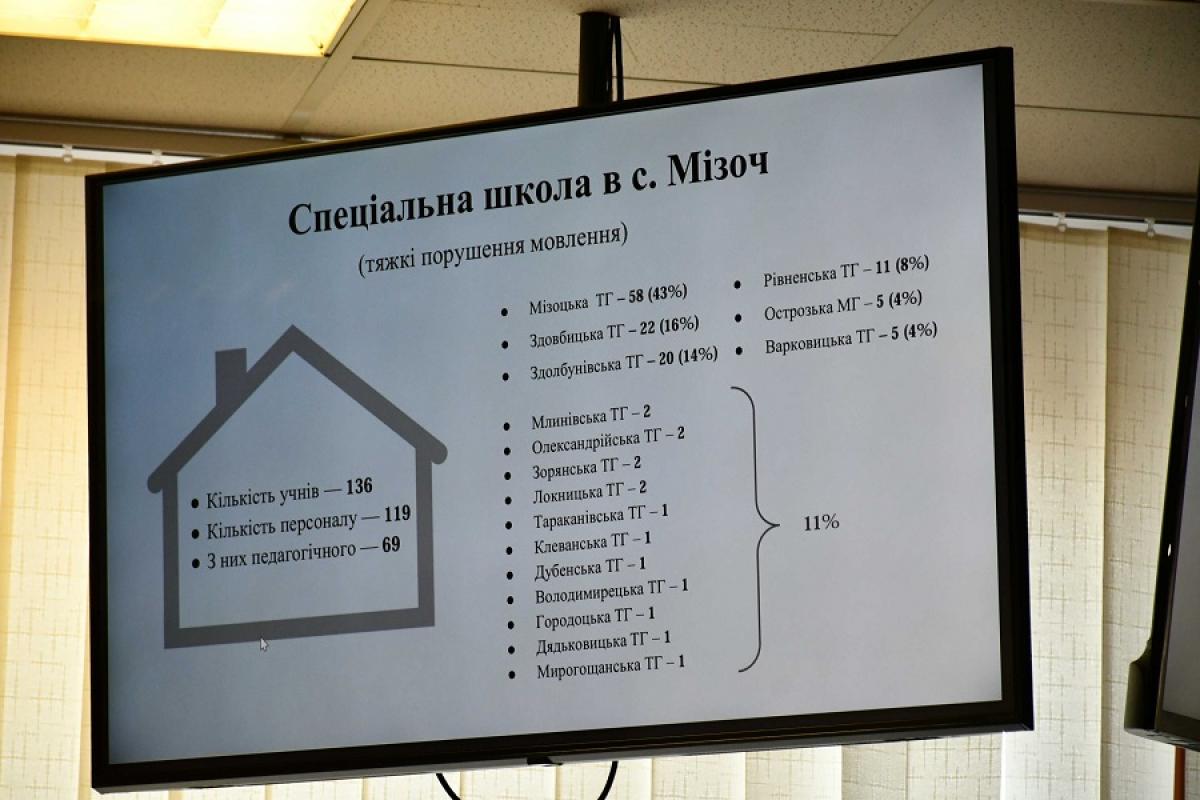 На засіданні були також присутні батьки вихованців та представники колективу закладу, а також голова Мізоцької ТГ. Свою позицію висловили й ініціатори проєкту рішення - департамент освіти і науки Рівненської ОДА.