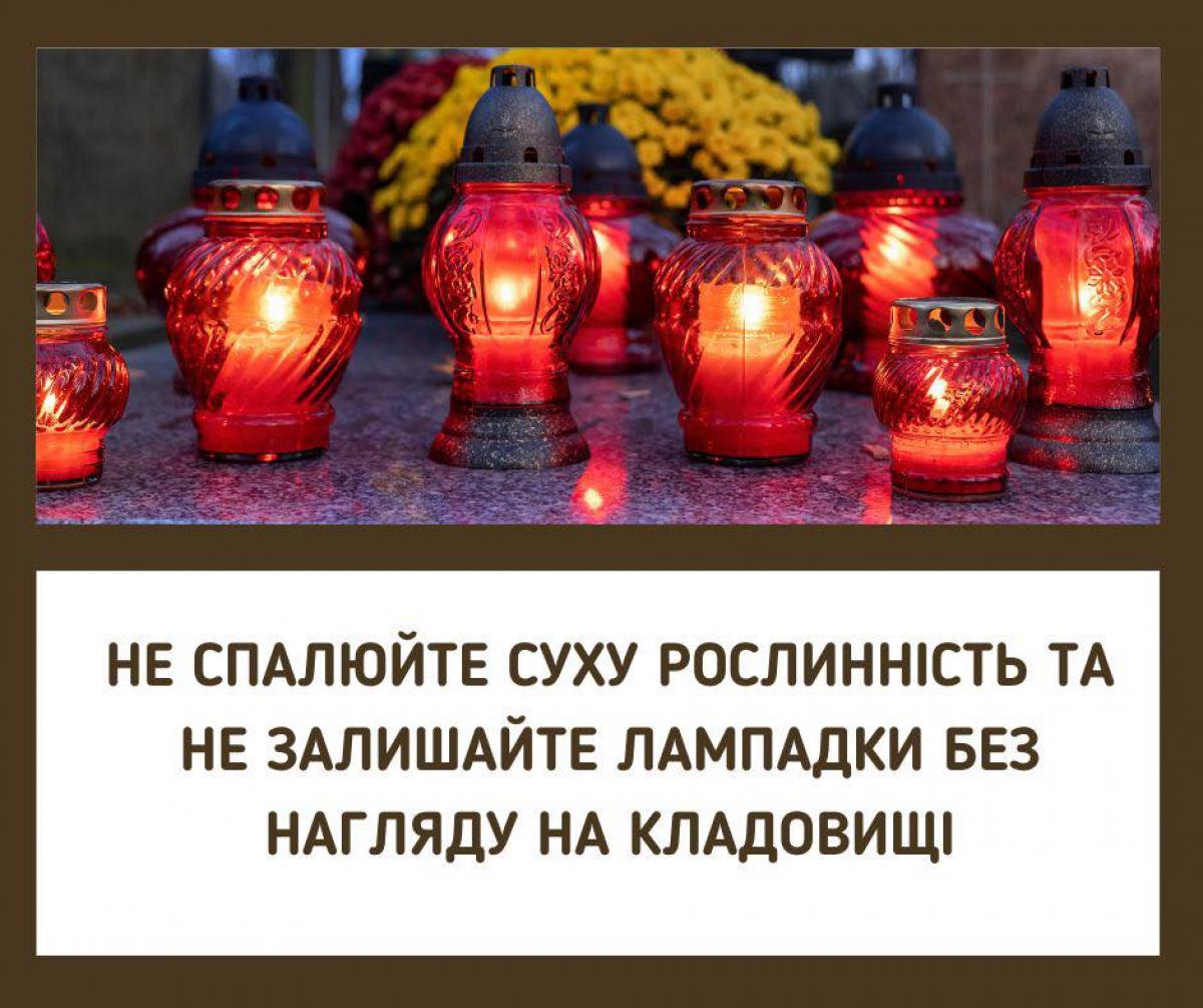 Відвідувачів кладовищ закликають утриматися від спалювання сухої трави, листя та іншої рослинності.