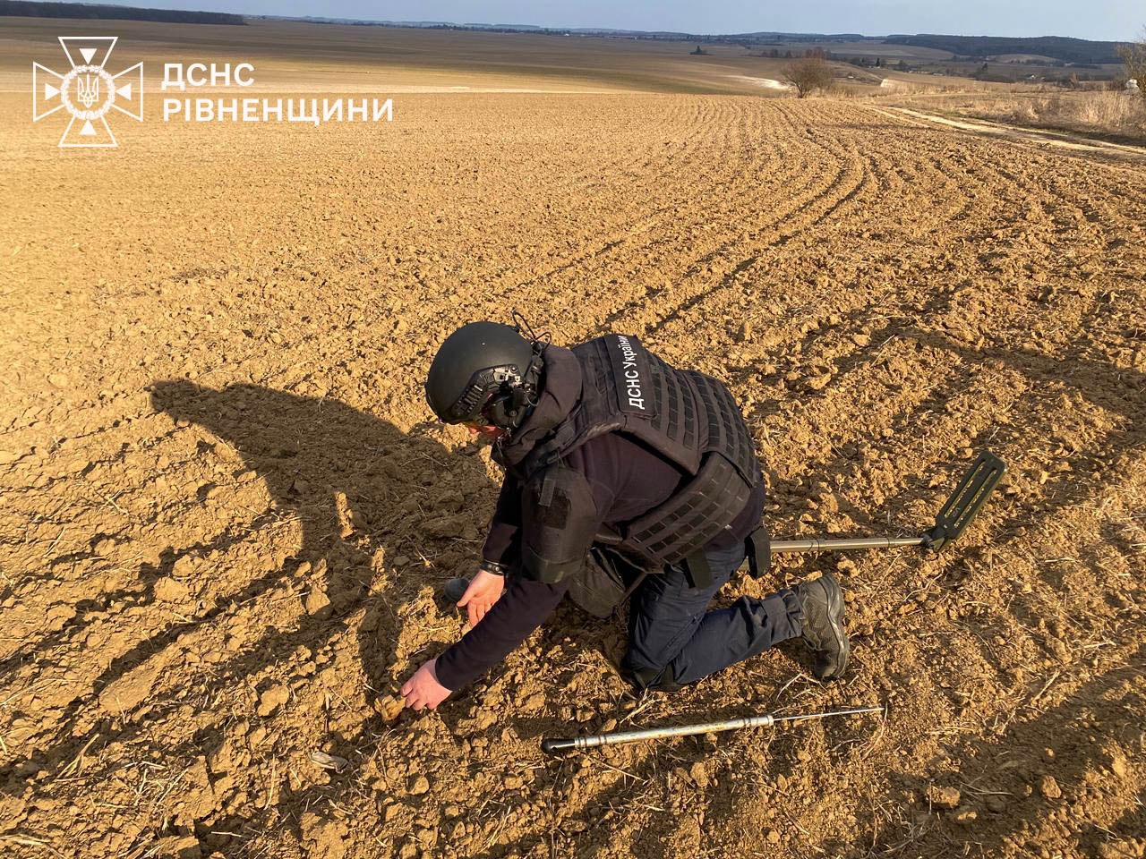 Зокрема, 25 березня у селі Соленів Демидівської громади Дубенського району виявили артилерійський снаряд калібром 76 мм.
