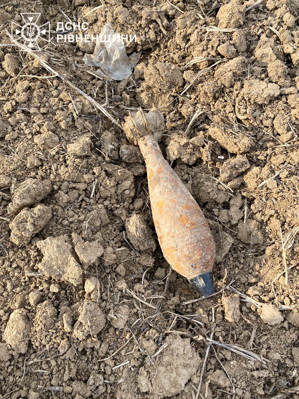 Ще один небезпечний предмет - мінометну міну калібром 82 мм -виявили 26 березня у селі Котлів Варковицької територіальної громади Дубенського району.