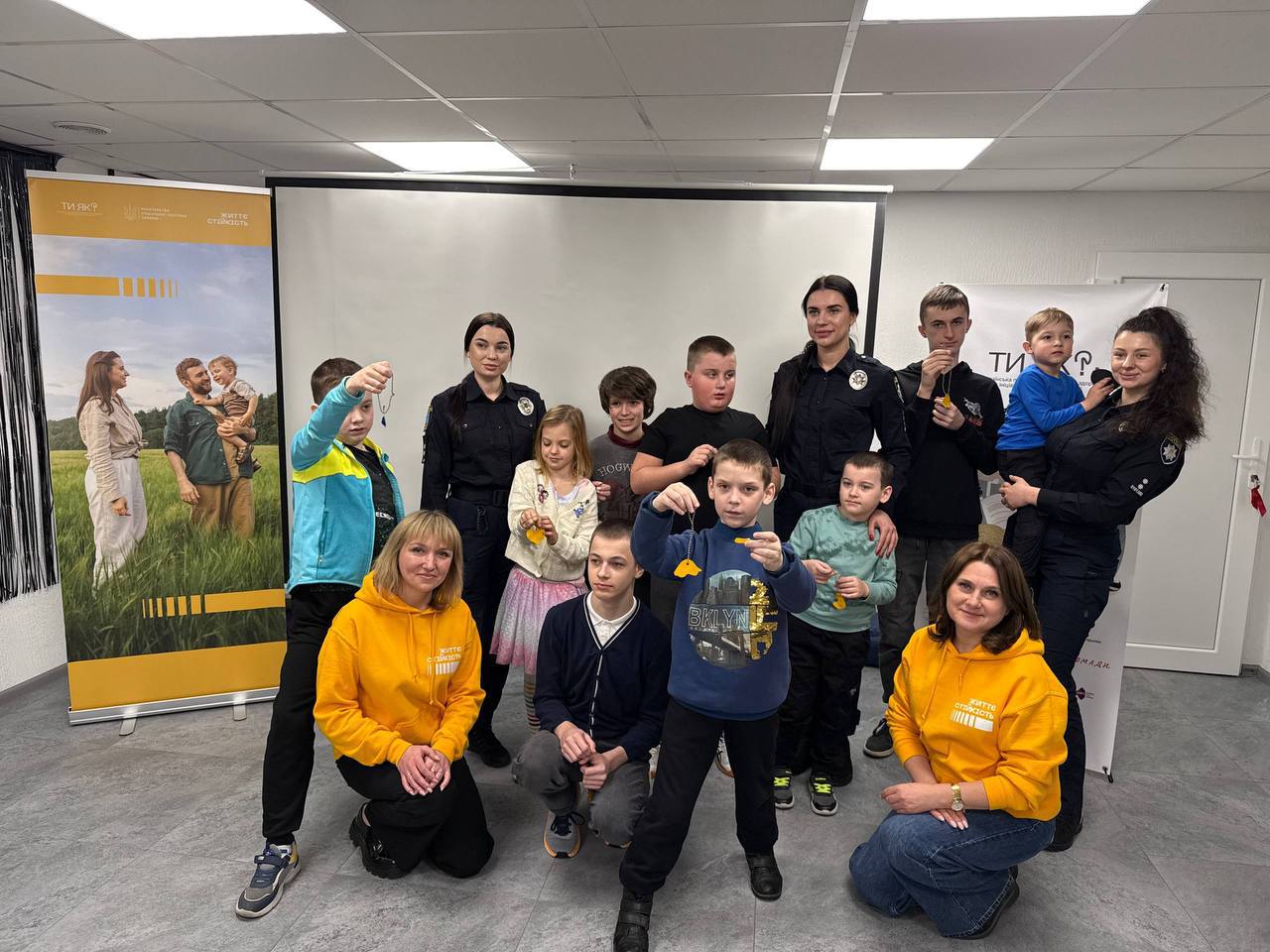 Окремою частиною заходу стала практична взаємодія з патрульною поліцією. Діти виготовляли світловідбивні флікери та разом із поліцейськими відпрацьовували правила безпечної поведінки на дорозі: знайомилися з дорожніми знаками та вчилися правильно переходити пішохідний перехід.