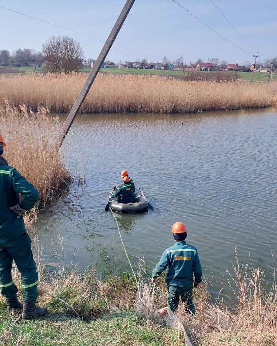 Спочатку опору обережно поклали, після чого за допомогою лебідки витягнули на берег та встановили на безпечній відстані від водойми.