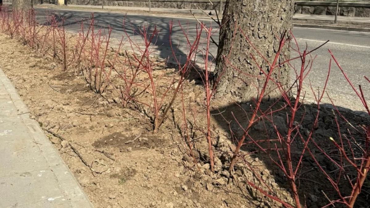 Комунальники посадили кущі дерену «Елегантіссіма». Він швидкорослий, заввишки до трьох метрів, відомий своїм строкатим біло-зеленим листям та яскраво-червоними пагонами взимку. Також відрізняється високою морозостійкістю та невибагливістю до ґрунтів.