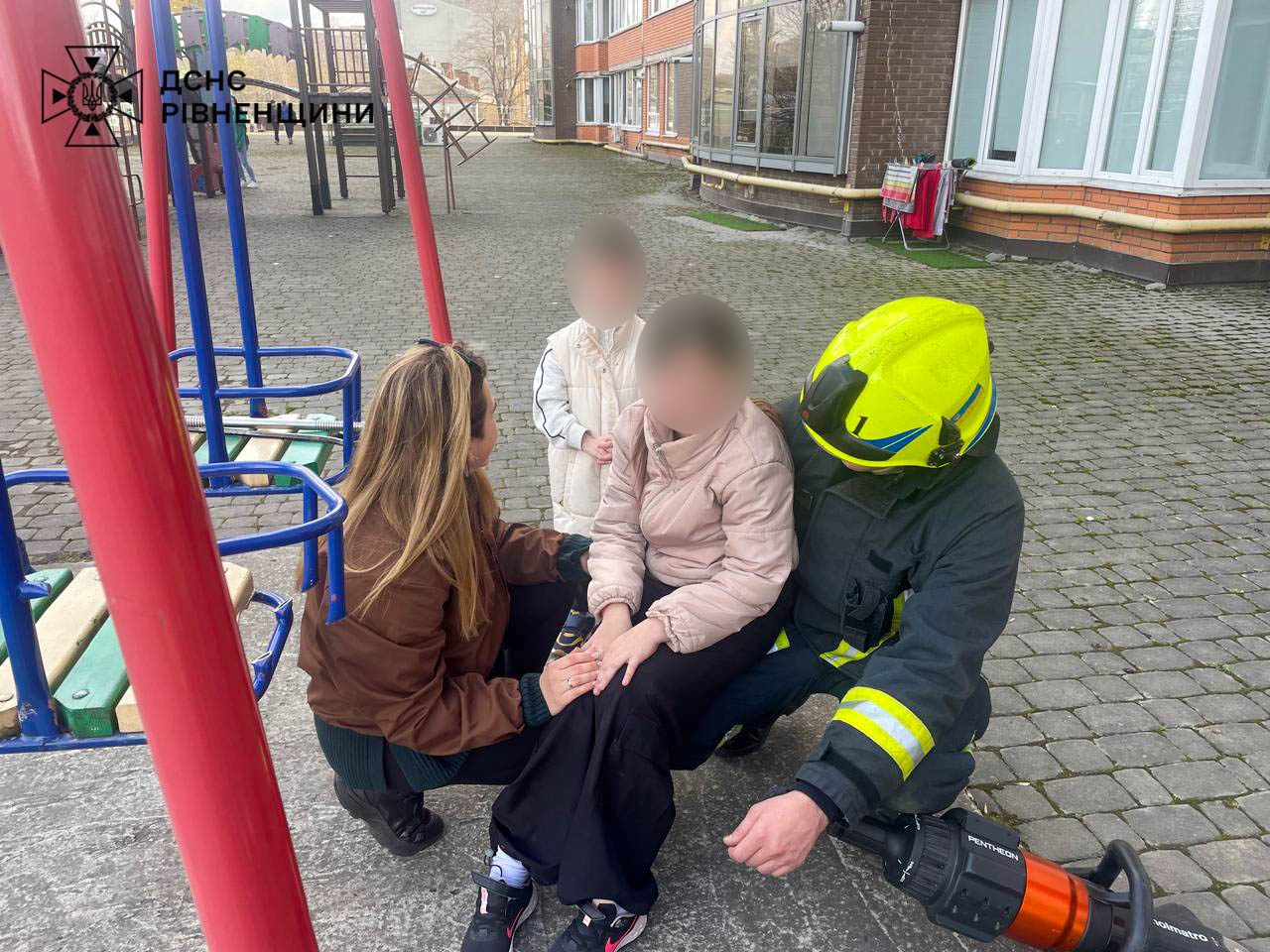 На місці події рятувальники побачили, що дівчинка 2016 року народження під час гри на дитячому майданчику застрягла нижніми кінцівками в елементі ігрового комплексу та не могла самостійно вибратися.