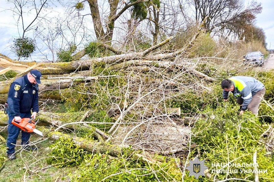 Через сильні пориви вітру на автошляхах зафіксовано падіння дерев та гілок. Правоохоронці оперативно розчищають проїжджу частину, аби забезпечити безпечний проїзд для водіїв.