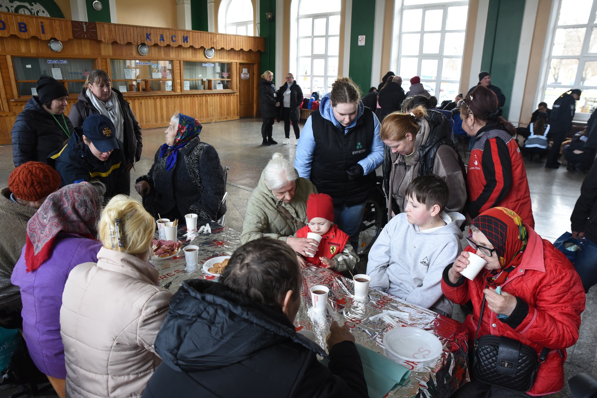 На пероні внутрішньо переміщених осіб зустрічали представники профільних департаментів і служб, правоохоронці, медики та рятувальники. До процесу також долучилися благодійні та громадські організації, які допомагають із першочерговими потребами переселенців.