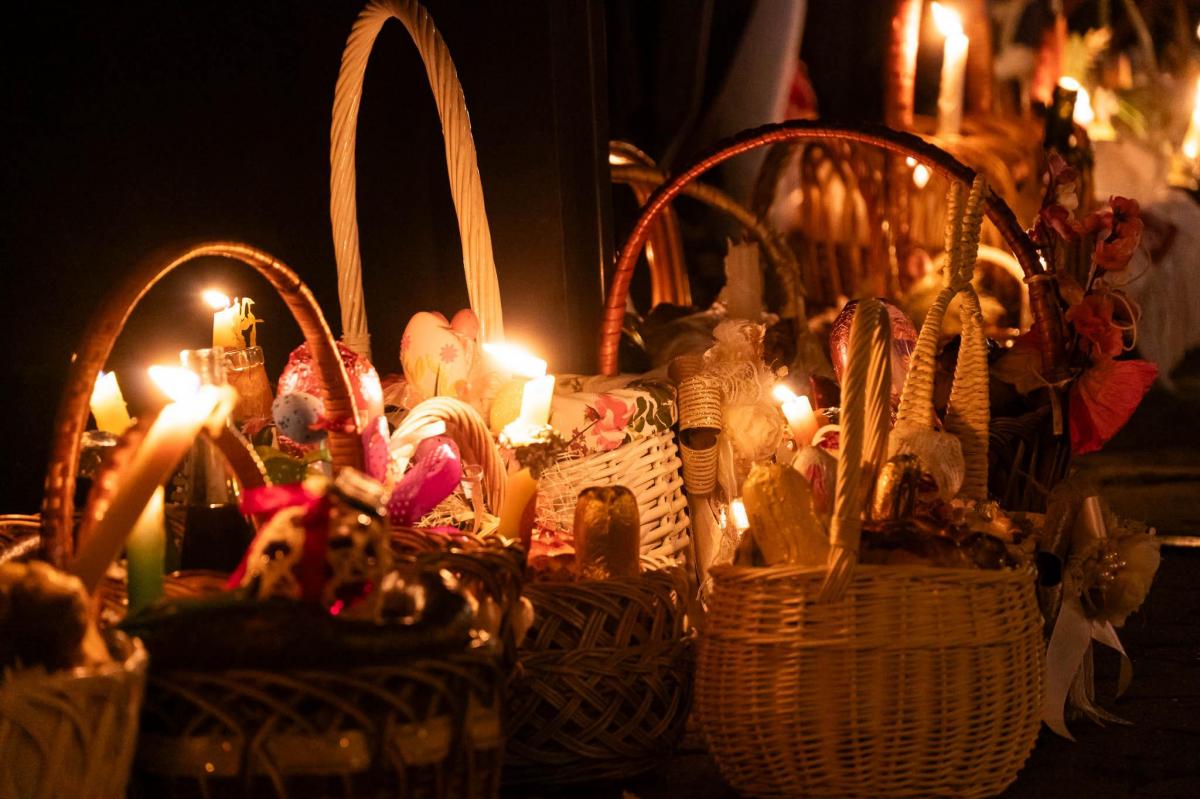Святкові богослужіння у всіх храмах розпочнуться опівночі (00:00). Освячення кошиків відбуватиметься одразу після завершення служби.