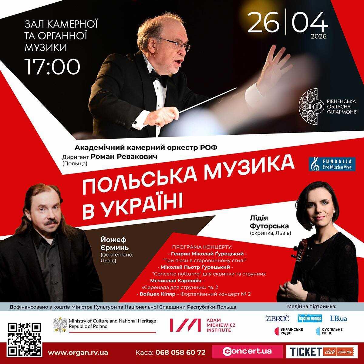 За диригентським пультом — Роман Ревакович (Польща/Україна), музикант, який тонко відчуває як польську, так і українську музичні традиції та майстерно вибудовує драматургію концертної програми.