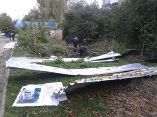 - Торік у нас під вікнами поруч із «наливайкою» зрізали 11 дерев, які захищали нас від зовнішнього шуму та вихлопів громадського транспорту. Адже загазованість нашого району у 5 разів перевищує норми у зв’язку із розгалуженим рухом міських маршруток та розміщенням автостанції поблизу залізничного вокзалу. А нещодавно на їхньому місці поставили будівельний паркан, за яким розпочалися відповідні роботи щодо зведення якоїсь забігайлівки. Очевидно, кіоска-розливайки бізнесюкам стало мало. Тоді терпіння наших мешканців увірвалося. Спочатку ми – мешканці чотирьох сусідніх будинків збиралися перекривати рух транспорту на нашій вулиці. Але потім просто вийшли і зруйнували цей паркан (у середу, 2 жовтня).